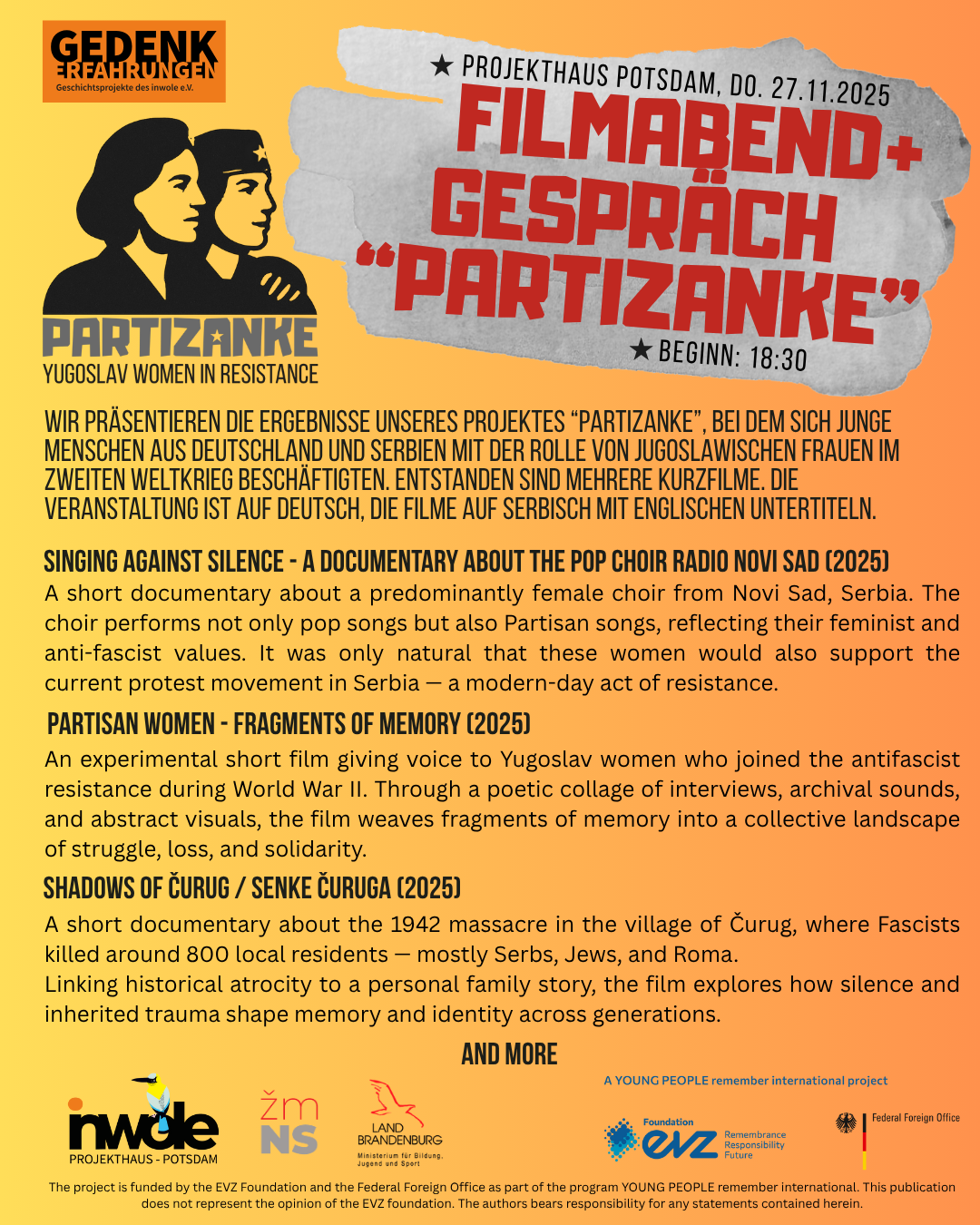 Donnerstag, 27. November 2025, Projekthaus Potsdam | Beginn: 18:30 Uhr Wir präsentieren die Ergebnisse unseres Projektes „Partizanke“, bei dem sich […]